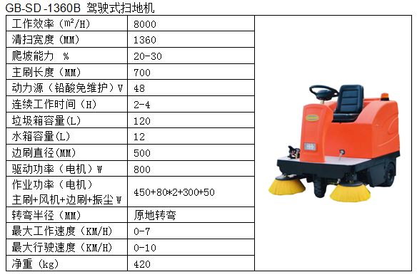 GB-SD -1360B 駕駛式掃地機(jī),操作簡便,易操作,工作效益高,性價(jià)比合理,是保潔物業(yè)理想的首選